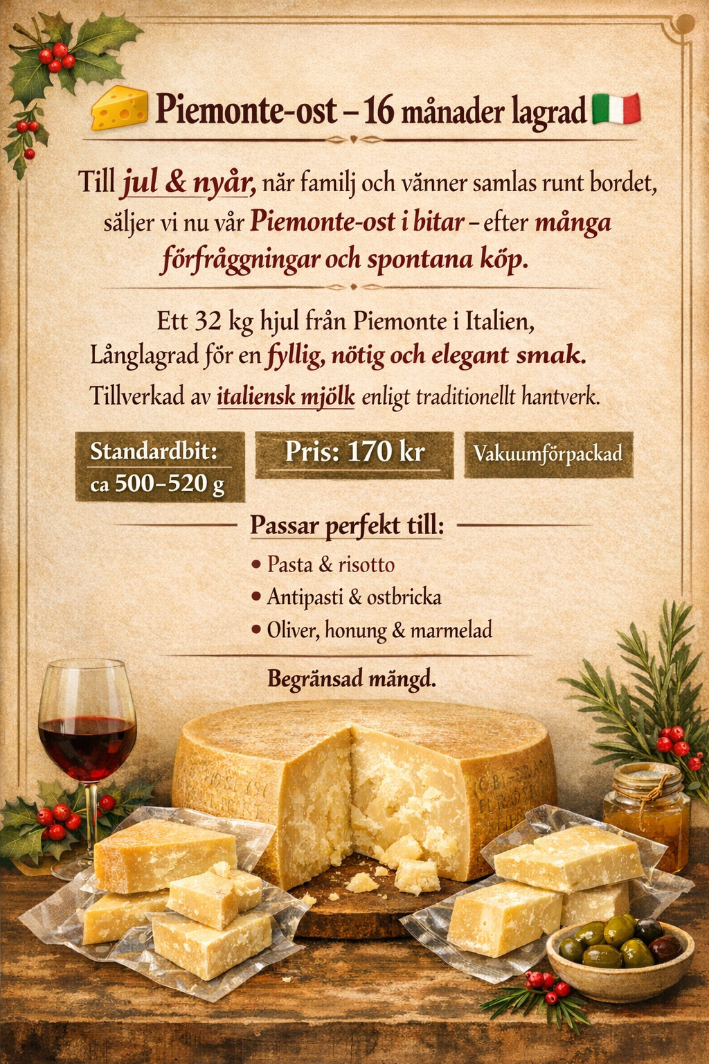 Allt är noggrant utvalt direkt från Italien – äkta råvaror, hög kvalitet och smaker du inte hittar i vanliga butiker.